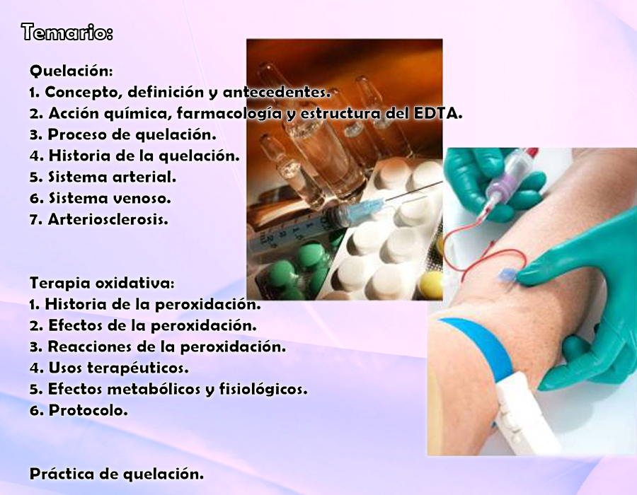 Formar profesionales que sean capaces de identificar a los agentes quelantes y utilizarlos como antioxidantes para revitalizar y frenar el efecto del envejecimiento, recomendar la quelación para evitar el deterioro producido por la edad o por la acumulación de metales pesados que también involucra un estado de oxidación generalizado de membranas, líquidos corporales y estructuras que inhabilitan el sistema metabólico y la funcionalidad de las células.