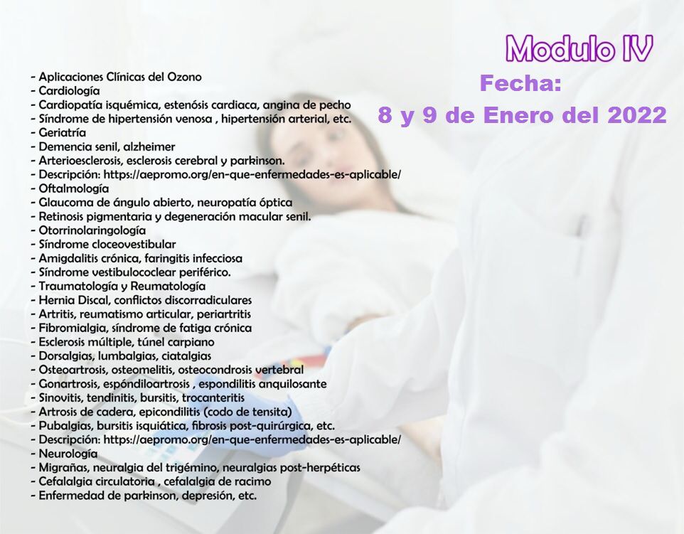 • Módulo IV Aplicaciones Clínicas del Ozono